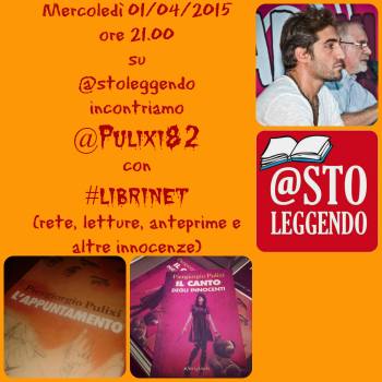 E infine ho coinvolto tue scrittori giovani e disponibili a incontrare i lettori anche attraverso i social. @Pulixi82 (PierGiorgio Pulixi), autore di noir dal forte impatto dove coniuga fascinazione, modernità, ritmo e sensibilità. Sarà un’occasione con #librinet di ripercorrere il suo ultimo libro “L’appuntamento” e conoscere in anteprima qualcosa sull’attesissimo “Il canto degli innocenti” in uscita l’8 Aprile per E/O edizioni.